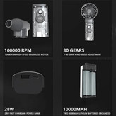 این دستگاه با باتری لیتیومی 10,000 میلیآمپرساعتی و دو باتری 5000 میلیآمپرساعتی قدرت بالایی دارد و میتواند به عنوان پاوربانک 28 واتی با قابلیت شارژ سریع استفاده شود. بنابراین، شما همیشه انرژی لازم را برای شارژ گوشی یا دستگاههای دیگر خود در دسترس خواهید داشت.